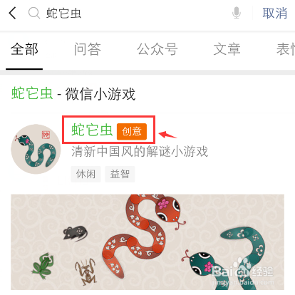 手机打开微信,搜刮输入【蛇它虫】打开它。