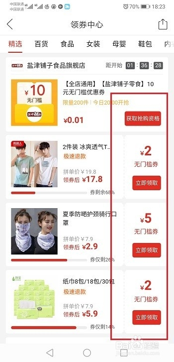 第四步进去之后,可以选择想方法取的优惠券,如下图所示: