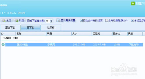 很快视频就起头下载了,下载速度大约是5-6MB/s的样子,我就截了张图的时候,203M的片子已经下载完当作了,大要3秒钟摆布。下载下来的视频为mp4格局。