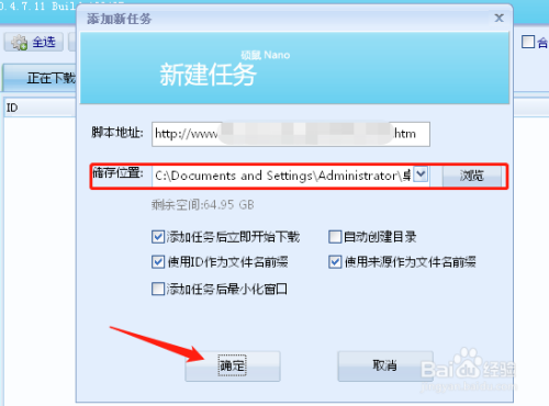鄙人载之前会呈现一个“添加新使命”对话框,选择存储位置和一些简单的设置,这里我选择将视频保留在桌面,点击【确定】按钮,起头下载。