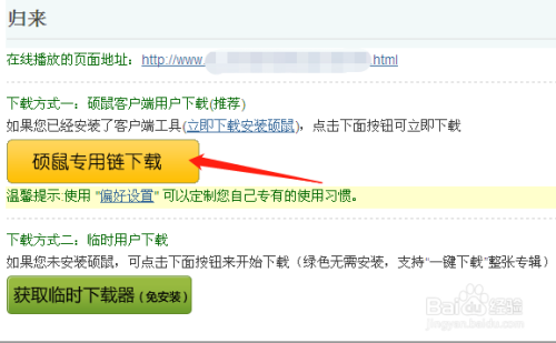 硕鼠撑持两种下载体例“硕鼠客户端用户下载”和“姑且用户下载”,因为我已安装了硕鼠客户端,所以选择前者,点击【硕鼠专用链下载】按钮,打开硕鼠下载器。