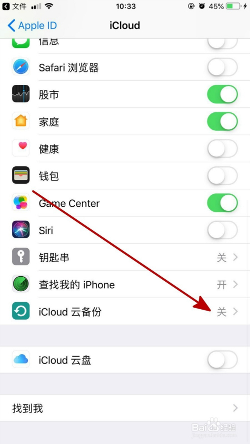 然后我们在打开页面中点击打开iclond云备份开关,打开开关后期待2秒中摆布,如下图