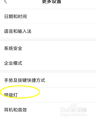 随后在更多设置的面板再次找到呼吸灯。