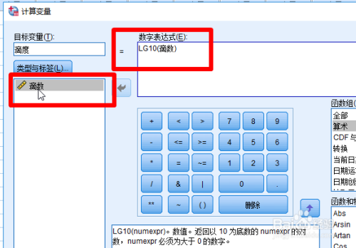 接着在点击要转换当作对数的原变量,形当作下图的公式