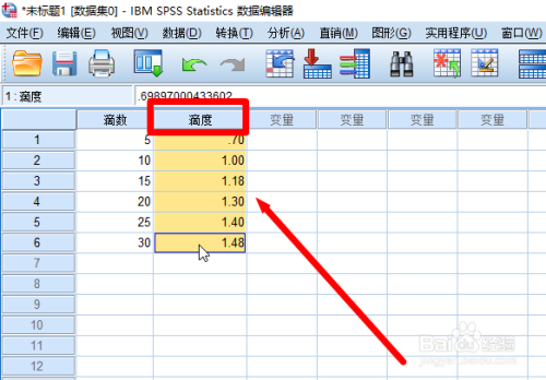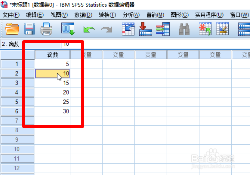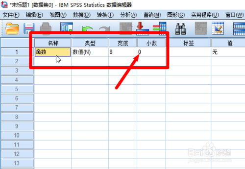 首先打开【SPSS】软件,然后点击变量视图,然后输入变量名称,注重【小数要调为0】