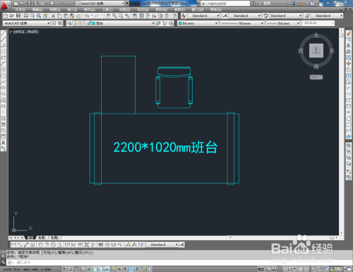 点击【矩形东西】,按图示在号令栏输入:d并按下空格键,输入长度数值:2200并按下空格键,继续输入宽度数值:1020并按下空格键