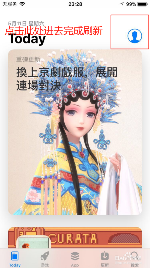 假如没有主动跳转到喷鼻港商铺,则需要打开app store ,点击today界面的右上角的小我信息这里,并点击你的apple id后完当作刷新。