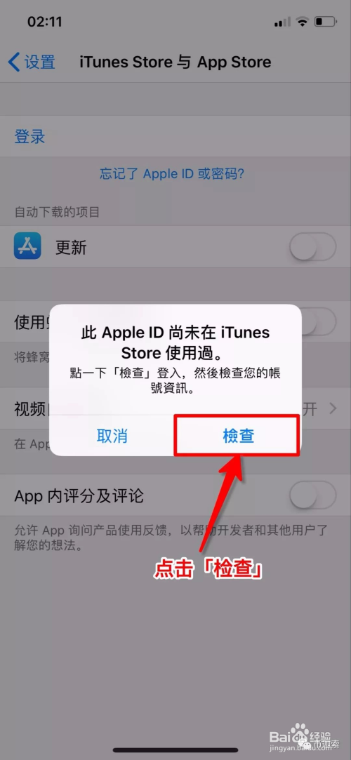 登录当作功后将会跳出此apple id尚未在iTunes store利用过,此时点击查抄按钮,继续完美相关信息。若是登录当作功未弹出该提醒,请打开app store随便下载一个免费的app,即可弹出该提醒。