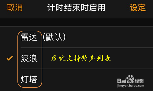 此外我们还可以自由设置提醒铃声,点击页面中心的“计时竣事时启用”这一项,然后可以看到我们日常平凡用的手机铃声都可以用于计时器提醒音;