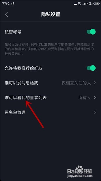 这样在隐私设置里就能看到【谁可以看我的喜好列表】,点击打开设置这个功能。