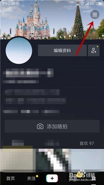 在抖音小我本家儿页里看到【喜好】列表是公开的,点击右上角的【三】。