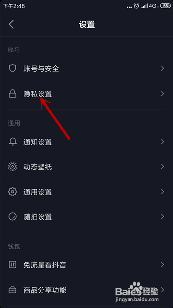 设置里面有个【隐私设置】,我们需要打开这个功能。