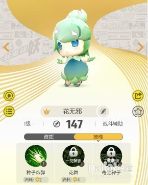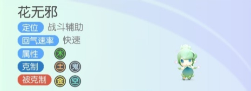 花无邪属性是木,是战斗辅助型妖灵,可以禁止属性为土和鬼的妖灵,可是必然要小心属性为金和空的妖灵。
