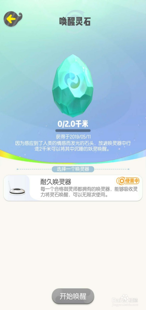 灵石有三种,第一种是最通俗的,那就是绿色灵石,叫醒后一般能获得比力还可以的妖灵。绿色灵石要求在灵石放进唤灵器后行走2千米,才能叫醒。如图