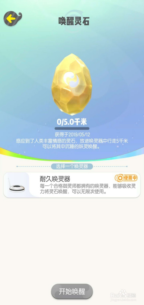 第二种是中等的,那就是黄色灵石,叫醒后一般能获得天资不错的妖灵。黄色灵石要求在灵石放进唤灵器后行走5千米,才能叫醒。如图