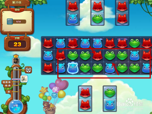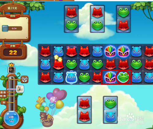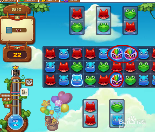 这么好的机遇不克不及让它掉败,我选用了珍藏好久的道具发光棒,就是让猫头鹰身边动物头发光,因为发光动物头要四个动物头一路爆才能获得,要打的话又得几步,所以我选择了道具,猫头鹰要和发光动物头一路爆才有最大的威力,或者是二个猫头鹰在一路也是超大的威力,所以我此次二步就要过关,如图所示。