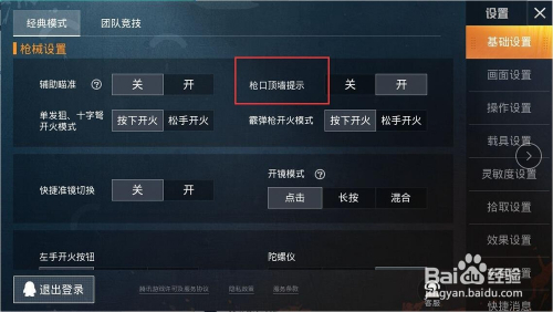 然后我们找到枪口顶墙提醒选项,如图所示;