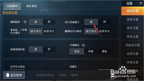 最后我们点击枪口顶墙提醒后面的开关将开关打到封闭就完当作设置了,如图所示;