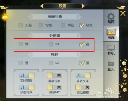 我们在游戏中可以设置低、中、高的分辩率哦。保举大师设置高的分辩率哦!
