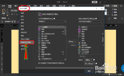 随后我们在“word选项”对话窗的左侧界面中点击“快速拜候东西栏”项,此时右侧界面中会呈现具体内容。如图所示:
