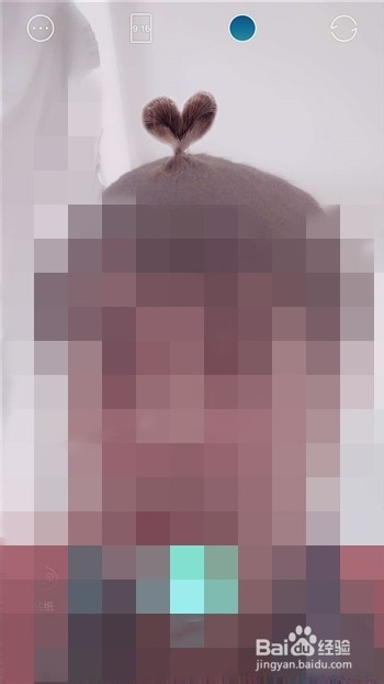 利用后就能看到我们的头上呈现爱心小辫子的特效了,很是的可爱,这样就可以录制视频。