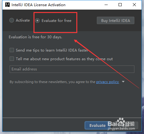 然后打开桌面上的IDEA的快捷体例,打开的时辰选择到Evaluate for free,也就是免费试用30天的体例打开