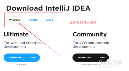 拜候IDEA下载的网址:https://www.jetbrains.com/idea/download/#section=windows