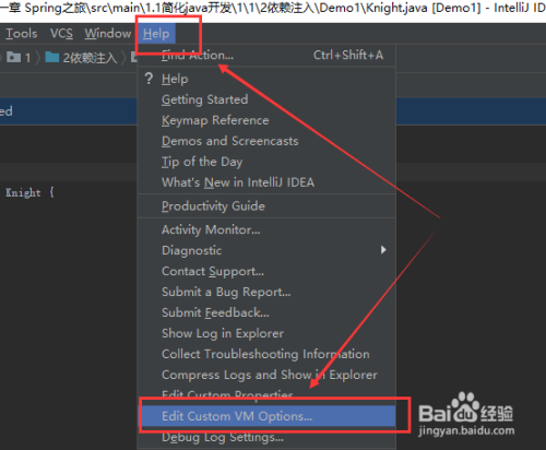 进入IDEA之后,我们点击Help --> Edit Custom VM Options...