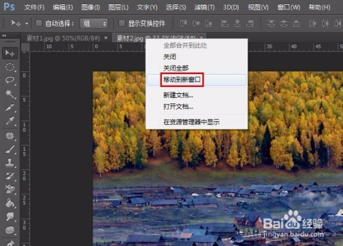 第四步:选择肆意一张图片,在题目处单击鼠标右键选择“移动到新窗口”,就可以显示两个窗口了。
