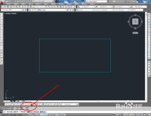 点击【矩形东西】,按图示在号令栏输入:d并按下空格键,输入长度数值:3200并按下空格键,继续输入宽度数值:1500并按下空格键