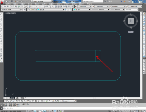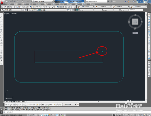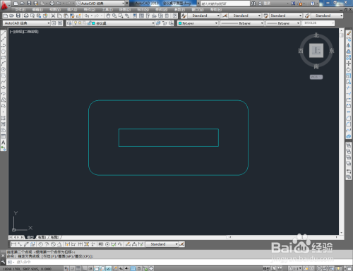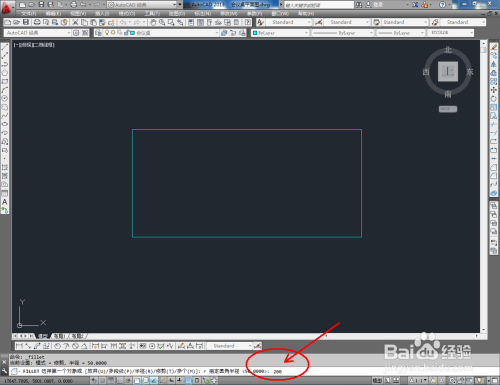 点击右边工作区中的【圆角】图标,在号令栏中输入:r并按下空格键,继续输入半径数值:200并按下空格键。鼠标依次点击矩形图案相邻的两条边线,完当作圆角处置。同样的步调,依次完当作别的三个角的圆角处置(如图所示);