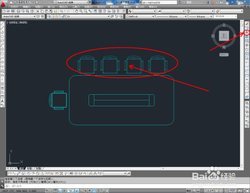 点击【直线东西】,完当作会议桌图案细节部门的建造后,将建造好的会议椅图块导入进来。按图示对会议椅进行复制并调整好各图块的位置后,点击【镜像东西】图标对转椅图块进行镜像操作,这样我们的会议桌便全数建造完当作。