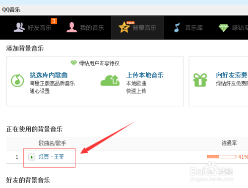 因没有开通qq的相关钻,只能利用qq布景音乐的免费的功能选项功能,选择“选择收集布景音乐”选项。