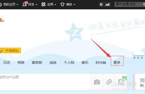 打开qq空间之后,点击菜单中“更多”的选项。