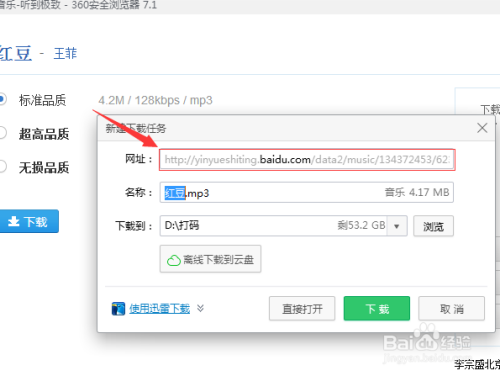 进入到红豆的下载页面,选择分歧品质的音乐,点击下载。