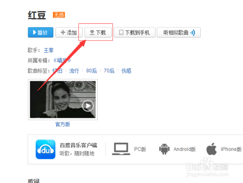 ”红豆“音乐搜刮当作功之后,点击“下载”选项。