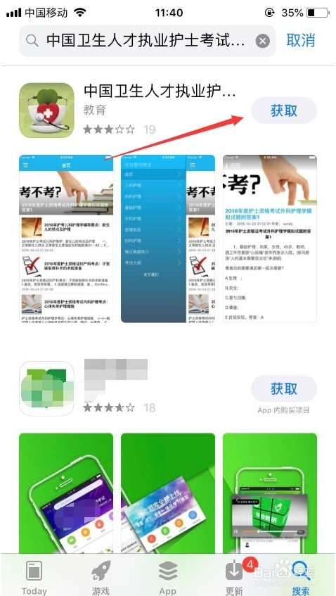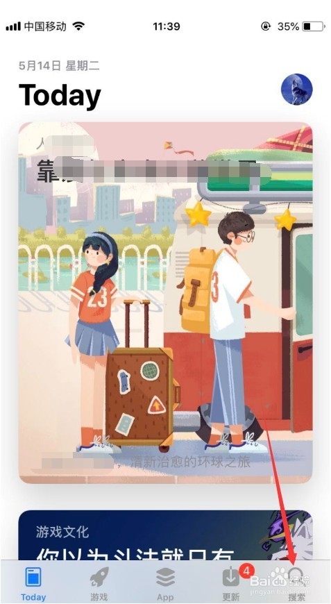 首先,打开手机上面的app store,进入之后点击右下角的“搜刮”,如图所示。