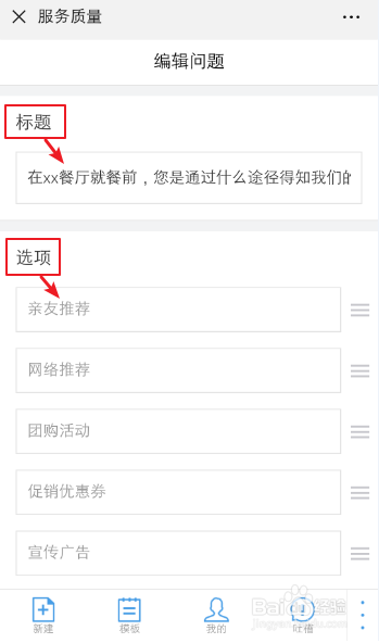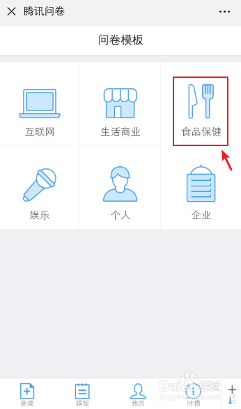呈现子菜单,按照本身的需求,选择问卷模式,好比:利用模板建立。