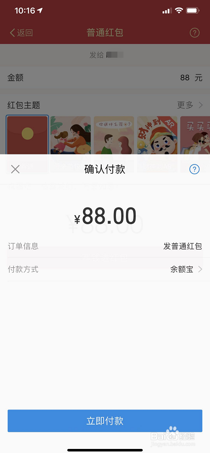 输入红包金额,还可以选择一个红包本家儿题;