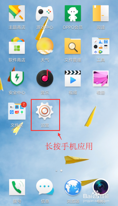在手机桌面,长按住一个手机应用。