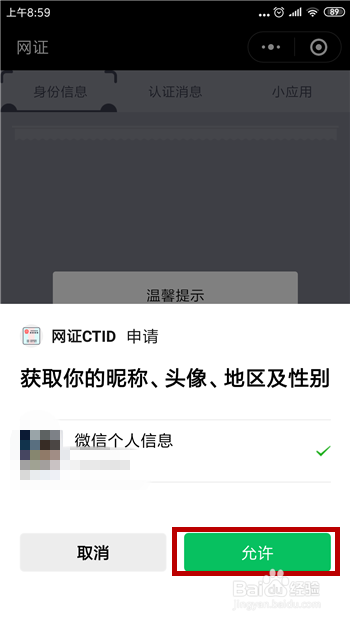然后要选择我们的手机号码,若是就是微信账号则直接点击【许可】。