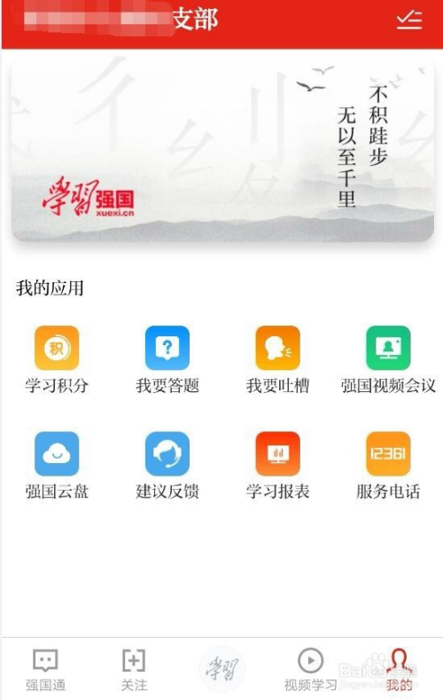 首先,下载安装勤学习强国,然后打开它,进入软件首页,然后,点击右下角的我的,进入小我本家儿页,如下图