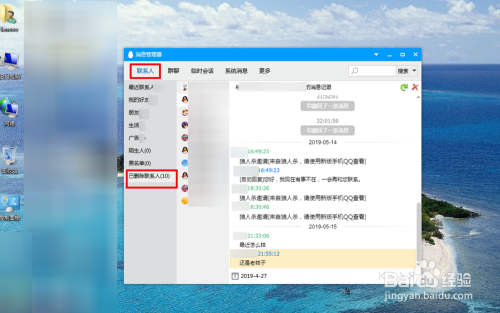弹出动静办理器中点击“联系人”,可以选择已经“删除联系人”,选择你需要查看聊天记实就可以到被删除聊天记实.