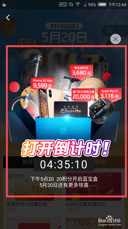 今朝还不克不及开启蓝宝盒,比及下战书5点20分的时辰,我们就可以用积分来开启蓝宝盒了,如图所示。