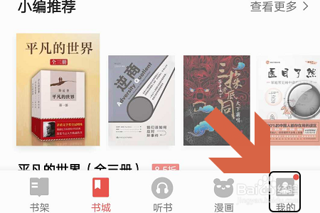 首先进入到掌阅APP首界面,然后我们会在页面的右下角看到“我的”这一项,如下图所示...