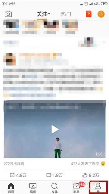 设置好权限后就可以打开手机的微博,在首页里点击右下角的【我】选项。
