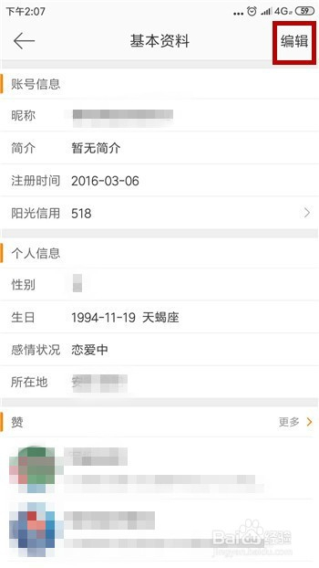 这样就可以起头编纂小我信息,找到【昵称】这一栏后并点击。