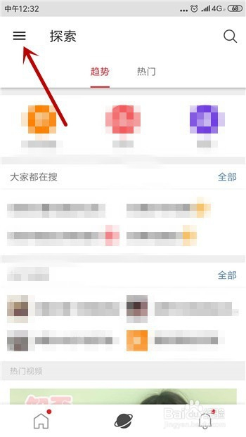 然后登岸我们的微博账号,点击左上角的【三】按钮。