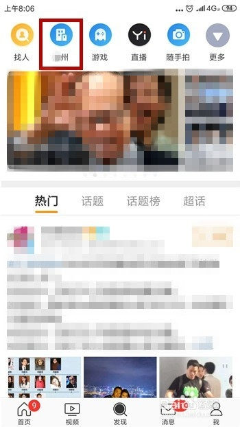 在发现界面中会呈现我们地点的城市(要开启定位权限),点击我们地点的城市。