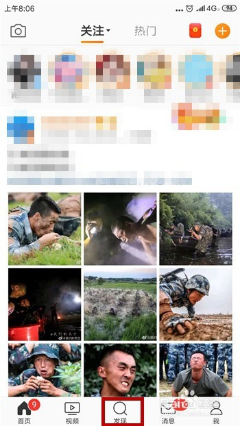 我们打开手机中的微博后,在底部找到【发现】选项并点击,如图所示。